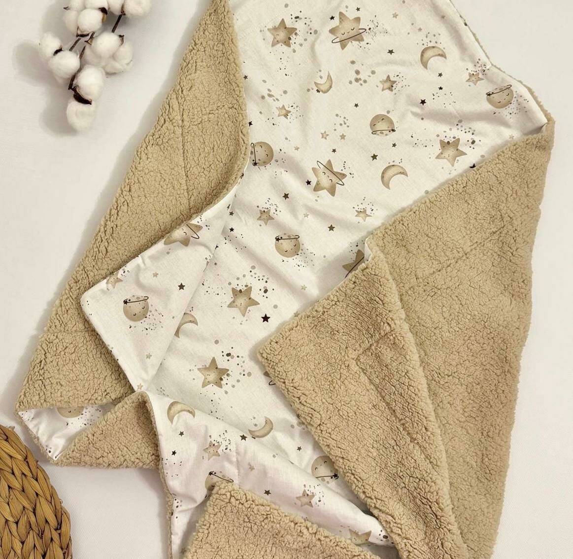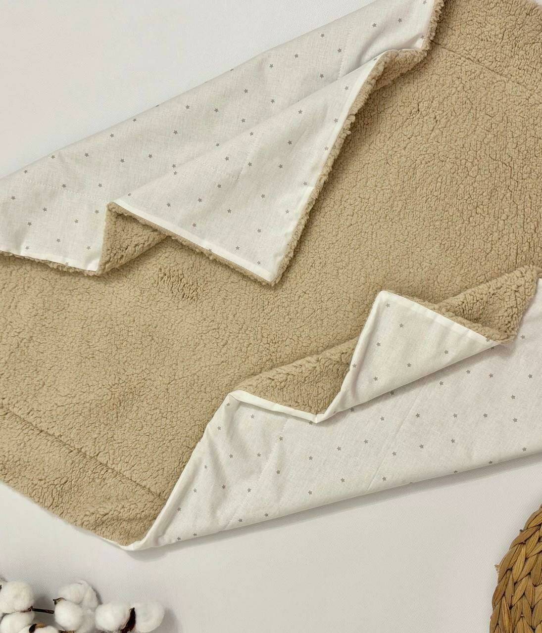 Плед для новорождённых из плюша Тедди и хлопка 100×80 см — мягкий,