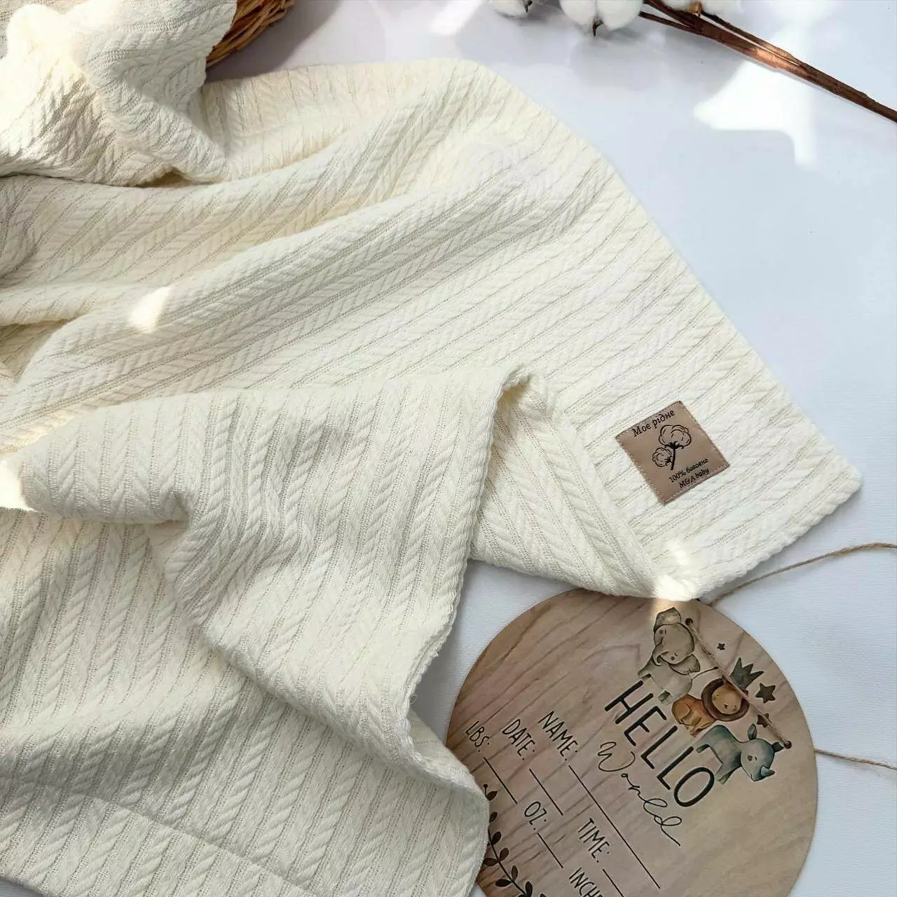 Нежный плед 100×80 см из ткани LINEN/KNIT PIQUE в стиле «косичка» –