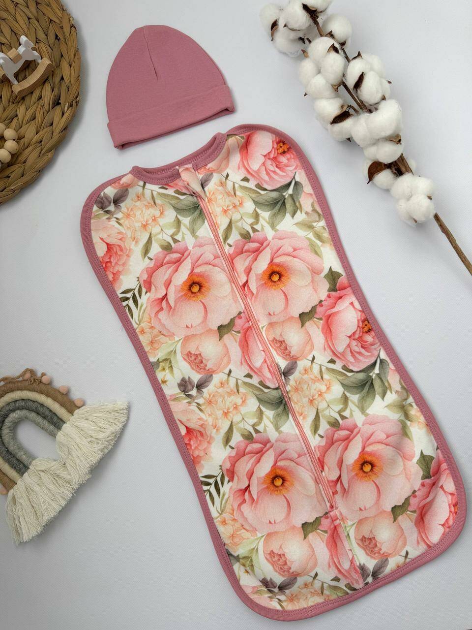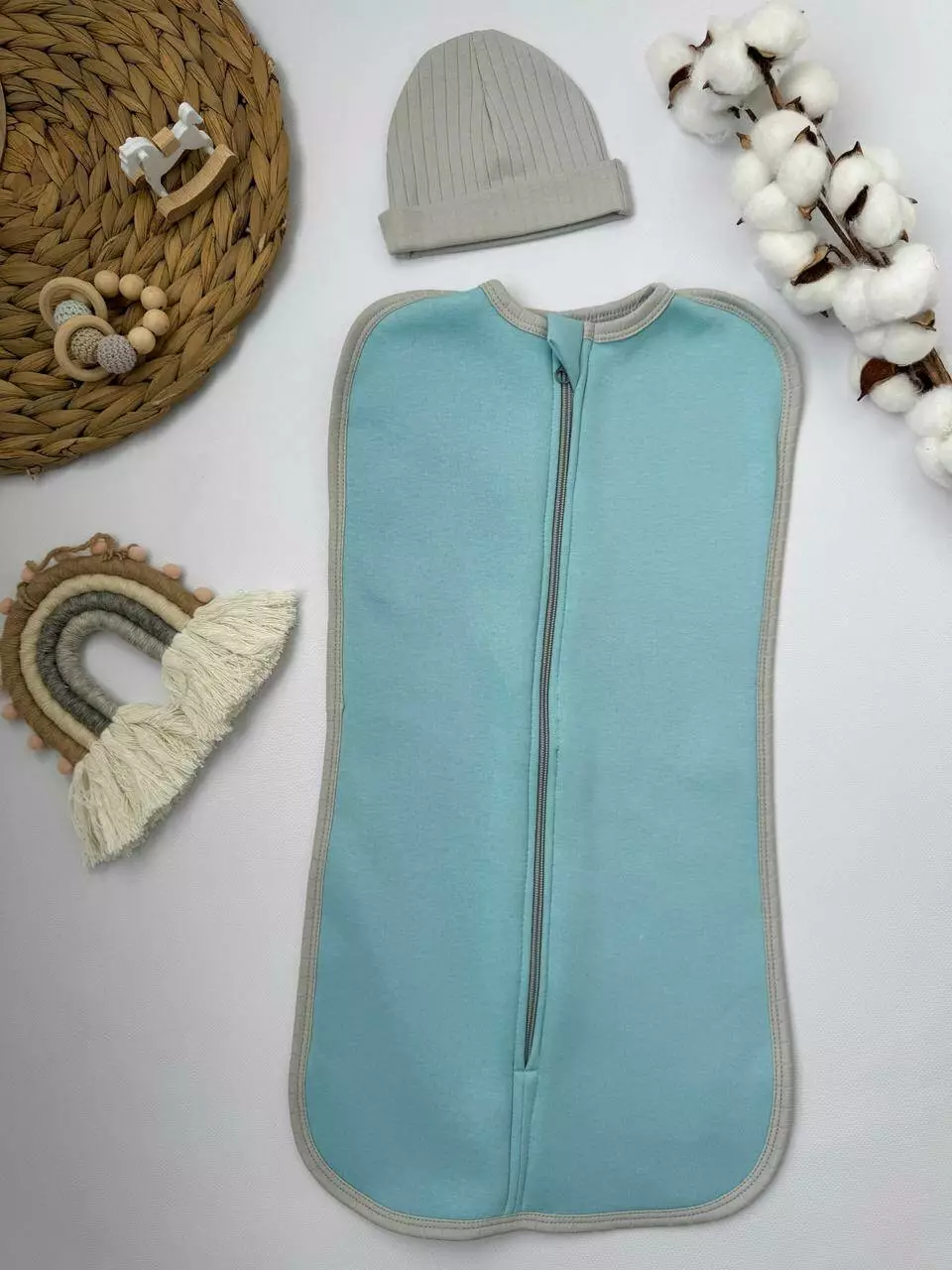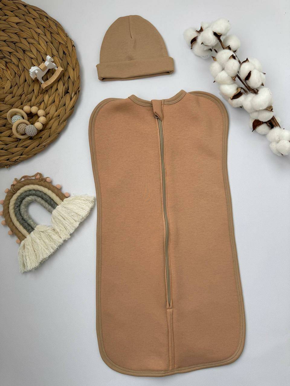 Кокон на молнии теплый для новорожденных младенцев из тринитки на флисе+ шапочка