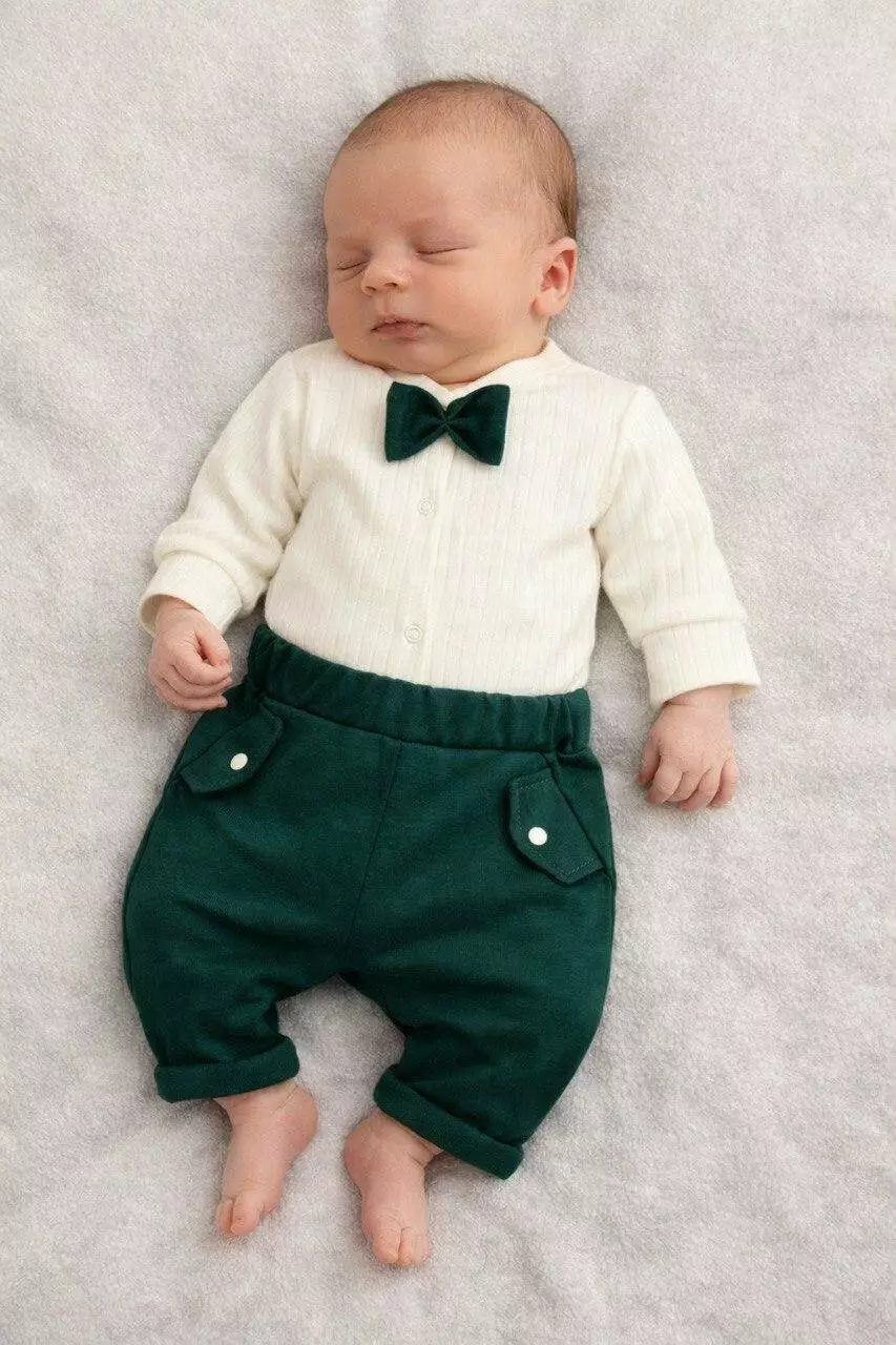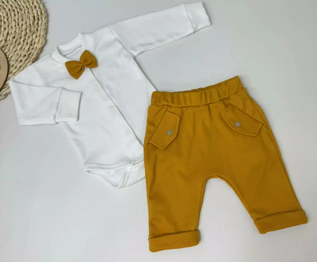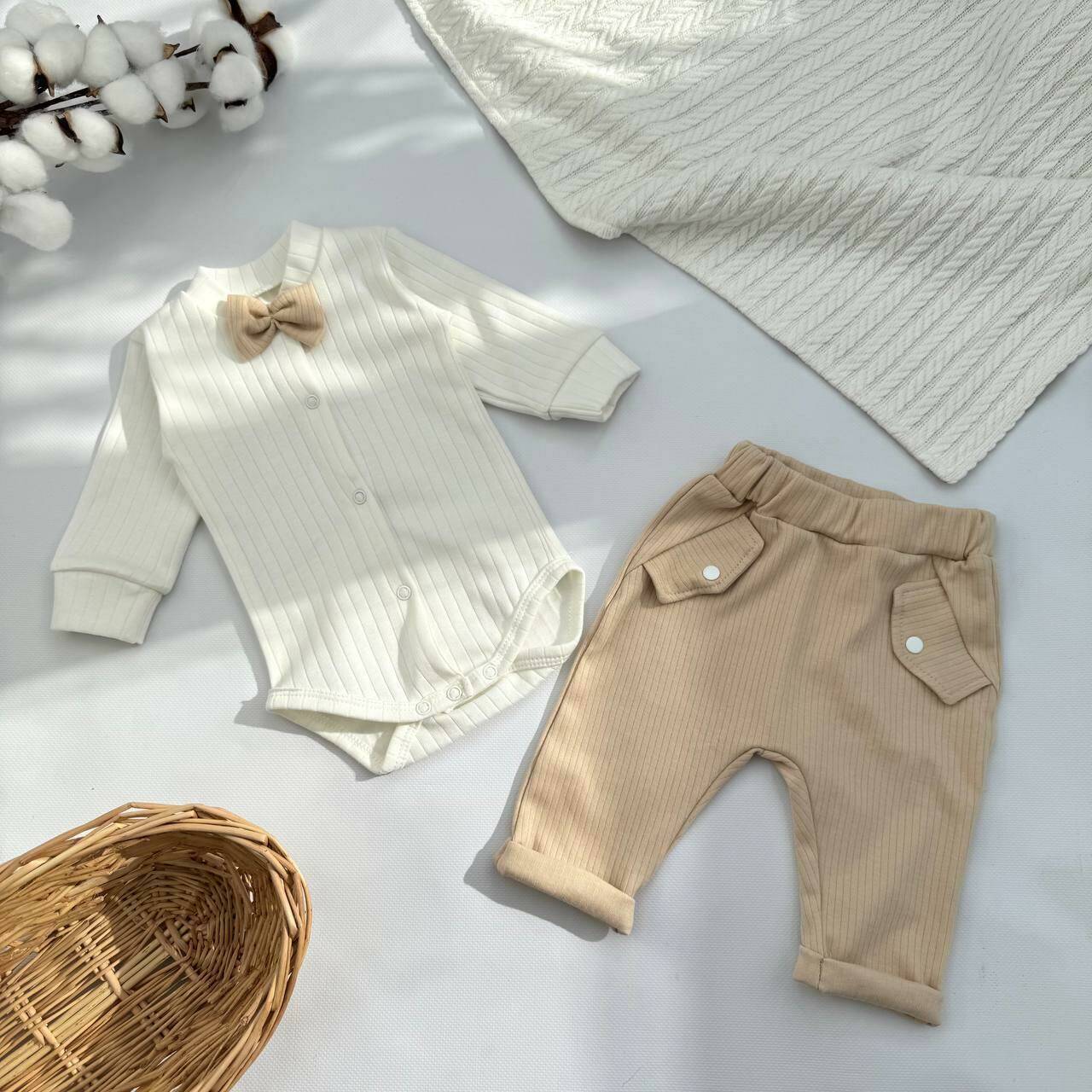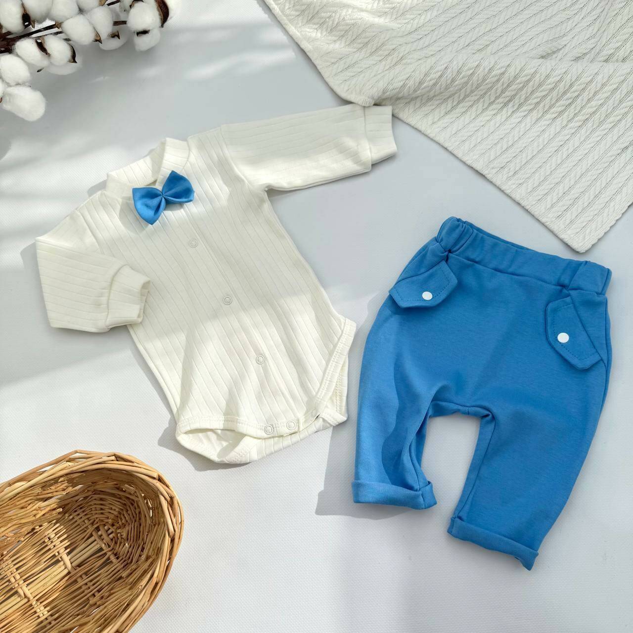 Комплект для новорождённого мальчика — бодик + штанишки в стиле