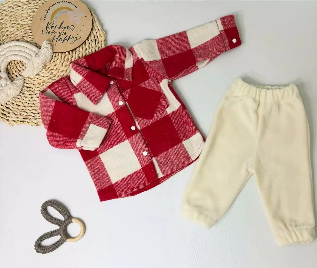 Мягкий комплект для малышей из натуральной байки и удобных флисовых штанишек создан специально для самых маленьких. Байка – это качественная хлопковая ткань, которая хорошо пропускает воздух и дарит комфорт, а флис сохраняет тепло и нежно согревает ребёнка.