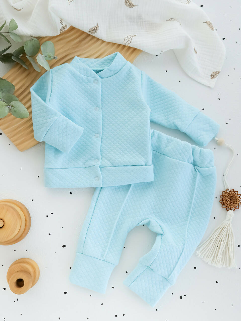 Удобный и тёплый комплект одежды для малыша из капитона — это отличное решение для повседневной носки в прохладную погоду. Стёганая ткань с утеплителем надёжно сохраняет тепло, оставаясь при этом мягкой и дышащей.