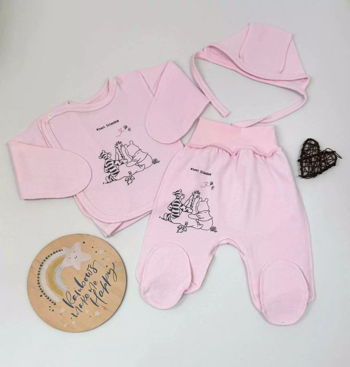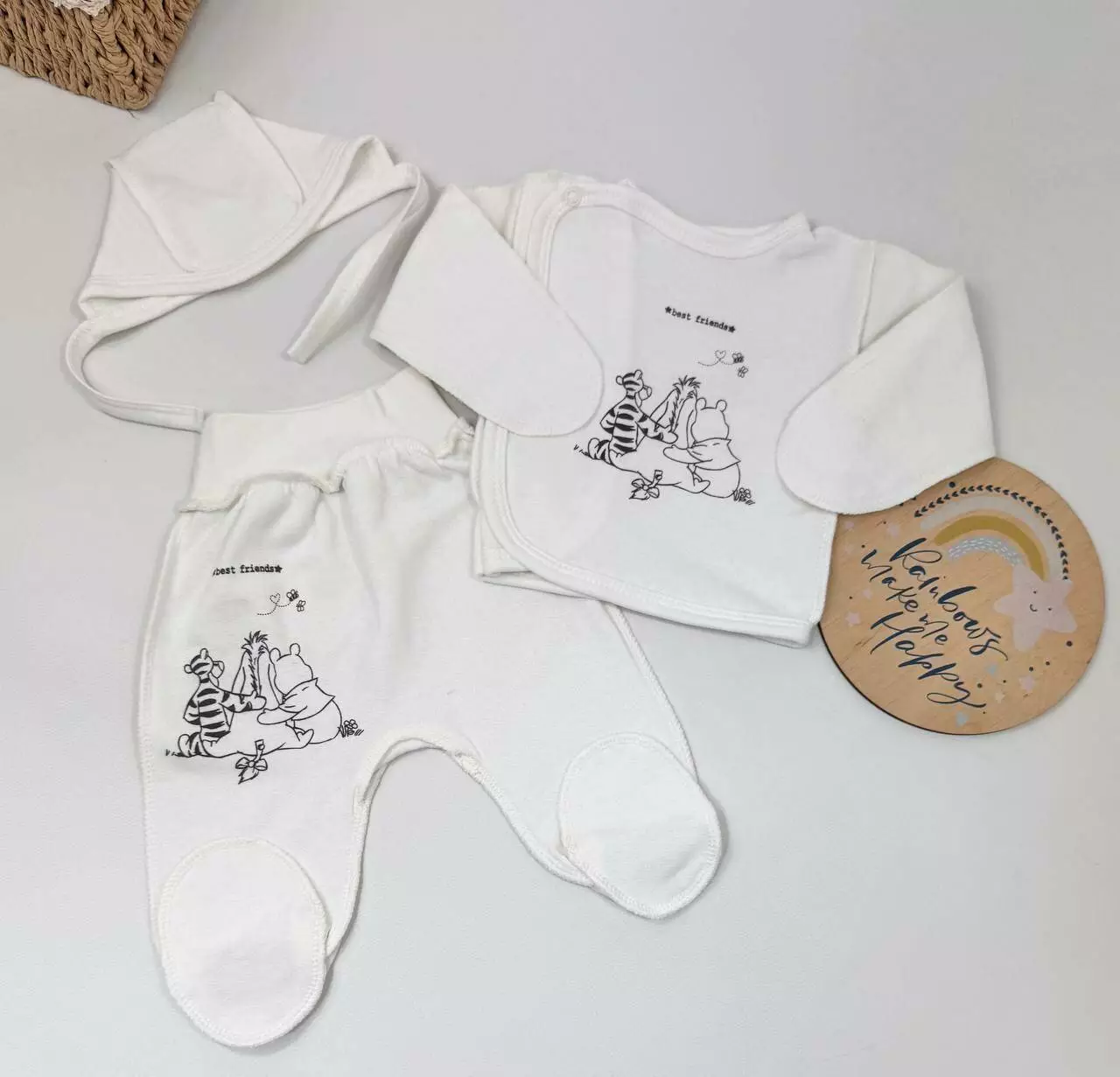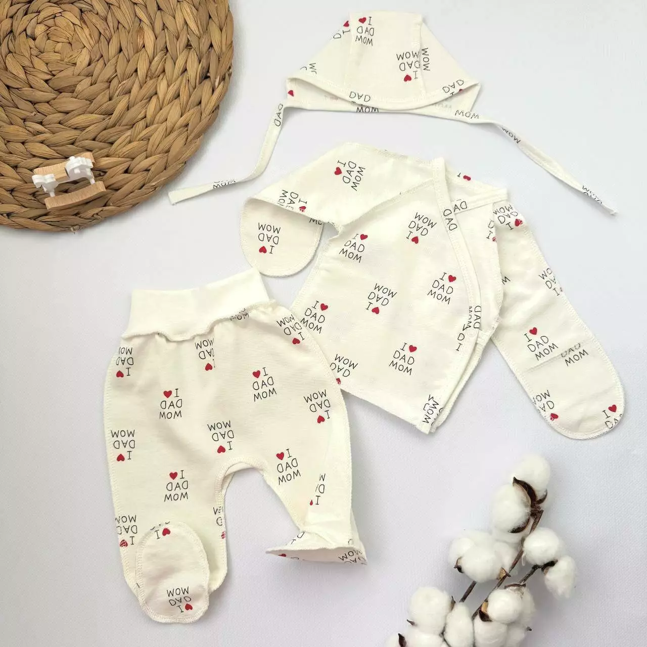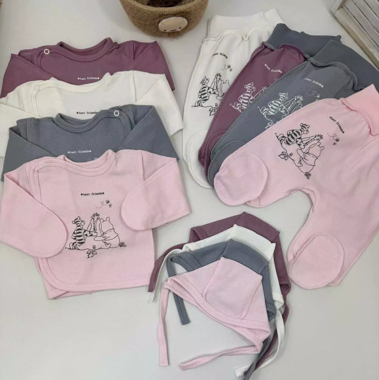 Набор из трёх базовых вещей для новорождённого — отличное решение для повседневного использования, сна и прогулок. Мягкий футер защитит малыша от холода и обеспечит комфорт. Идеально подходит для роддома и первых недель ????