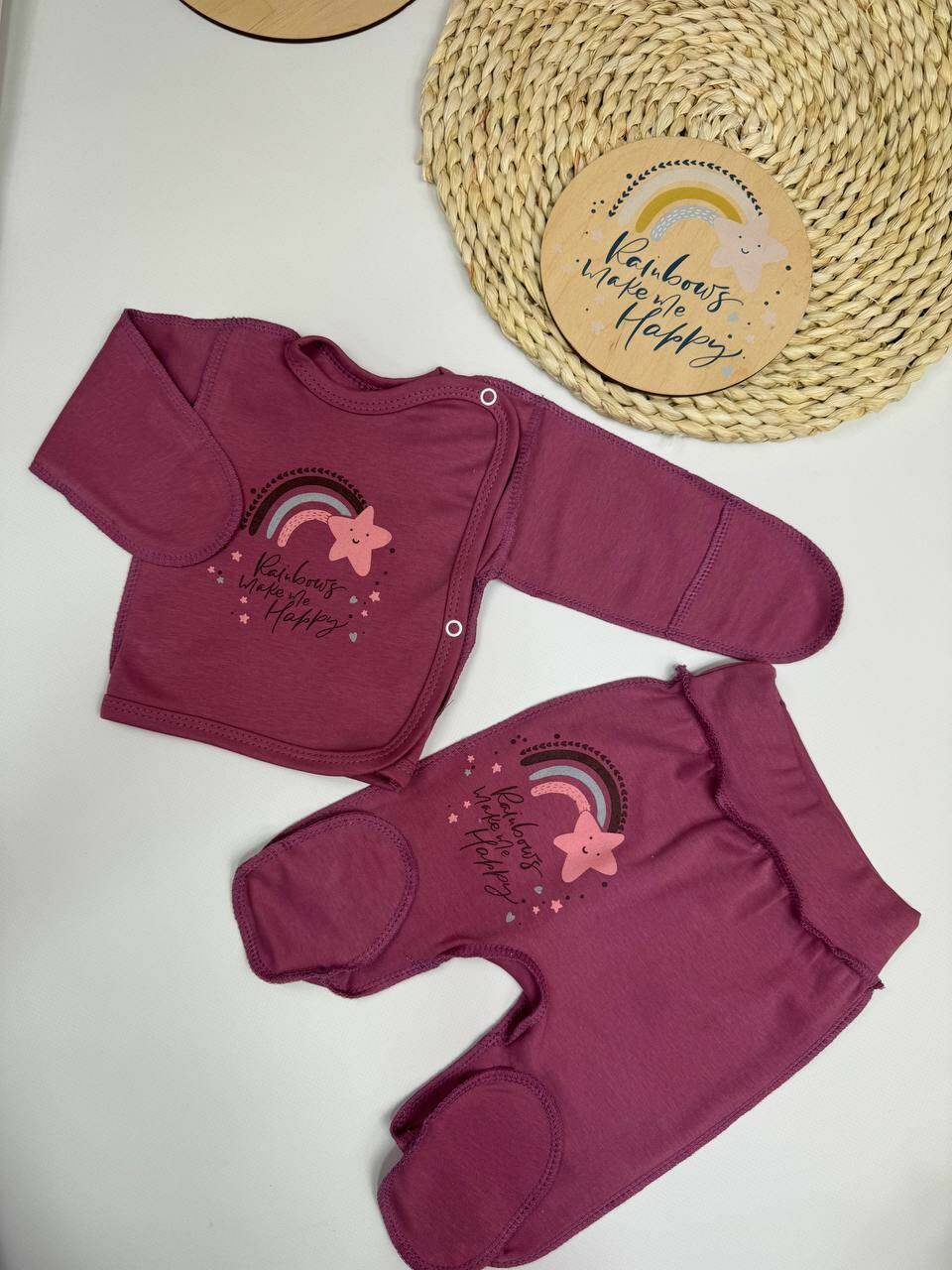 Универсальный и практичный комплект для новорождённого состоит из распашонки и ползунков, сшитых из нежного трикотажа интерлок (100% хлопок). Он станет незаменимым в гардеробе малыша с первых дней жизни: подходит для дома, прогулок и выписки.