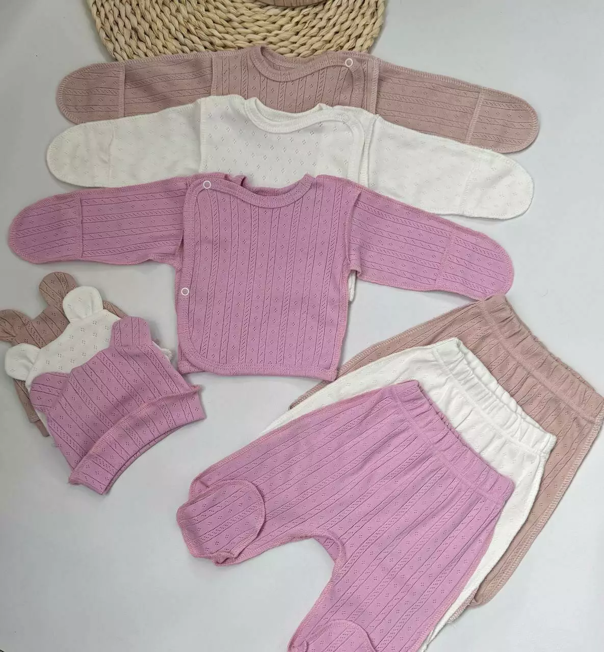Мультирип — дышащий трикотаж с вафельной структурой, хорошо тянется и не раздражает нежную кожу младенца. Отлично подходит для новорождённых ☁️