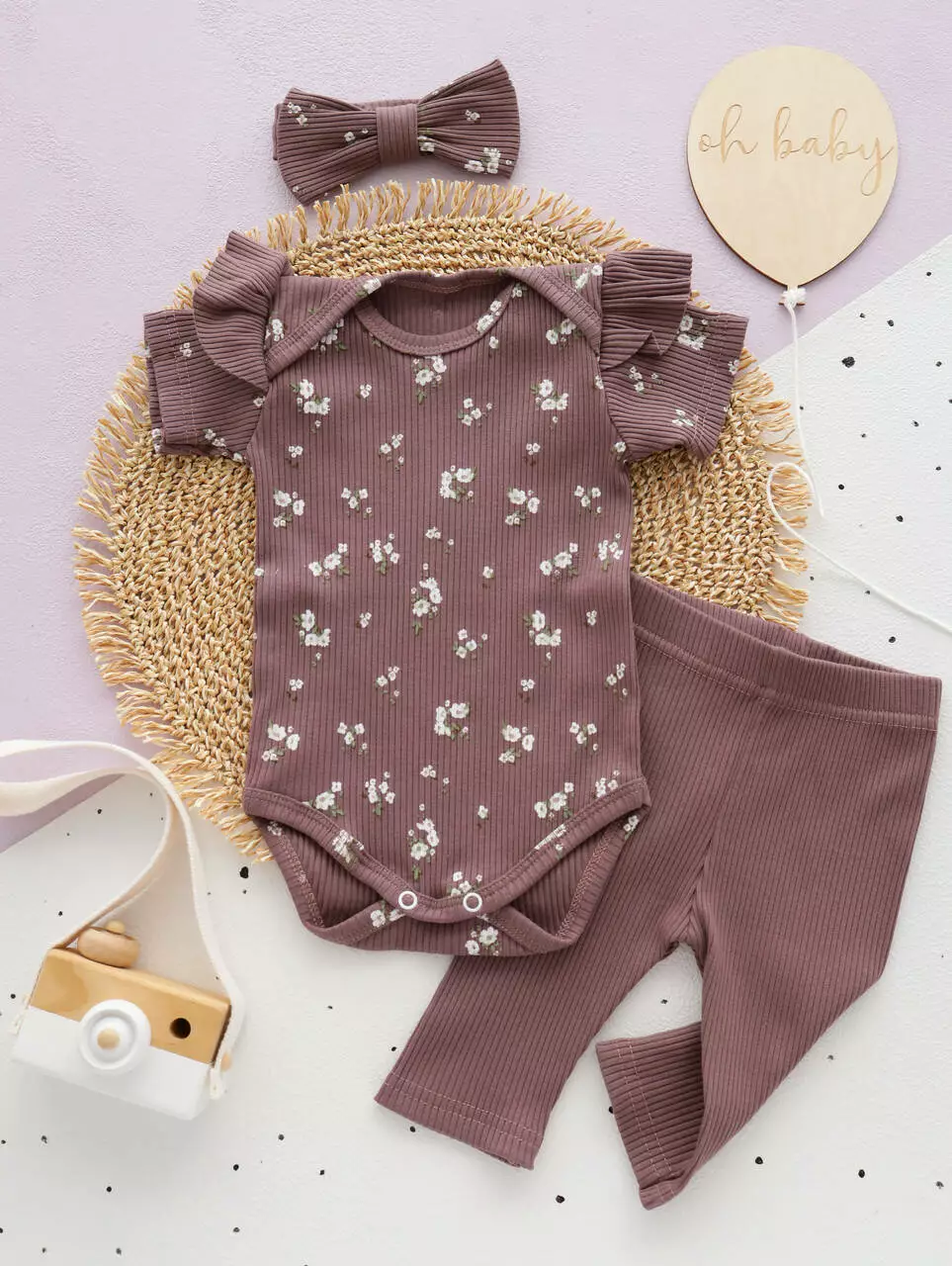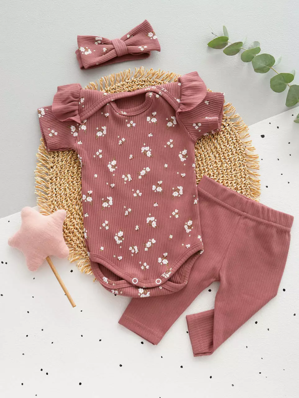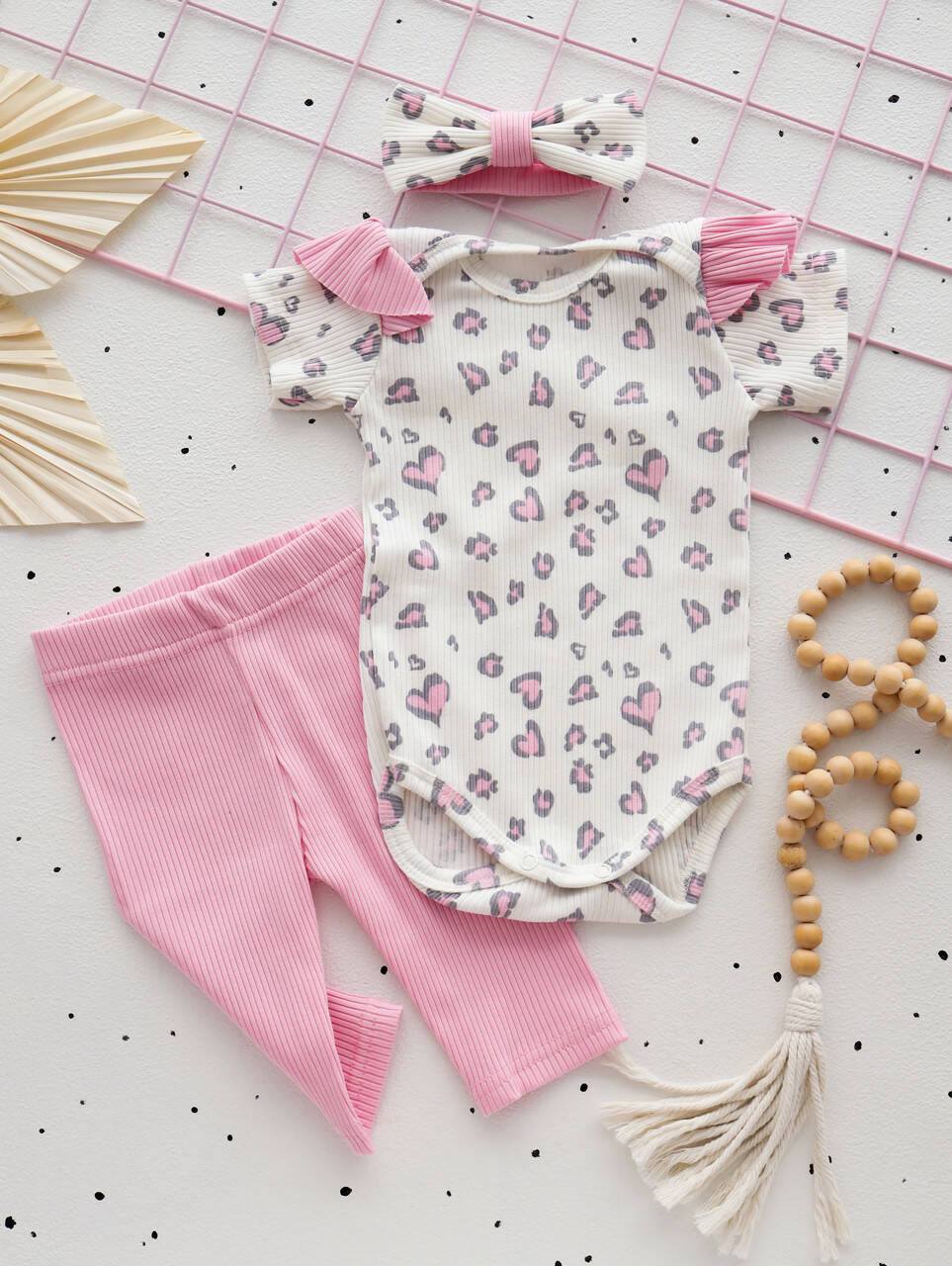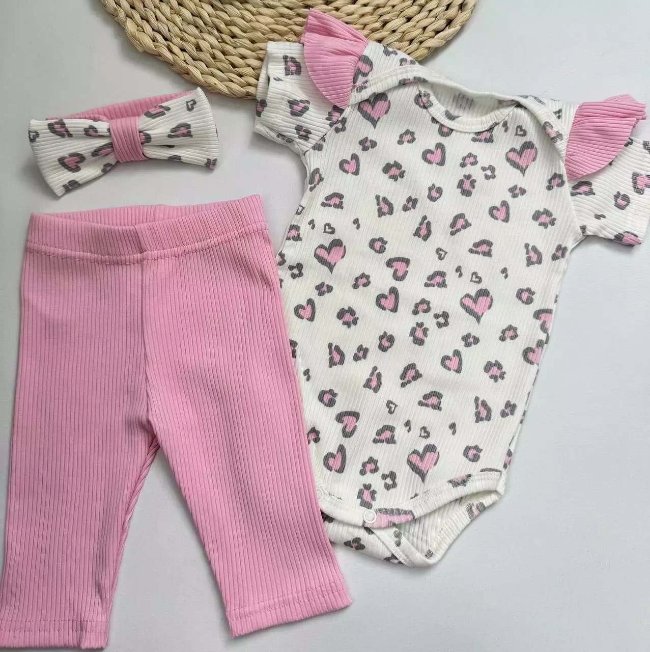 Комплект для новорожденной девочки боди с рюшами штанишки и повязка