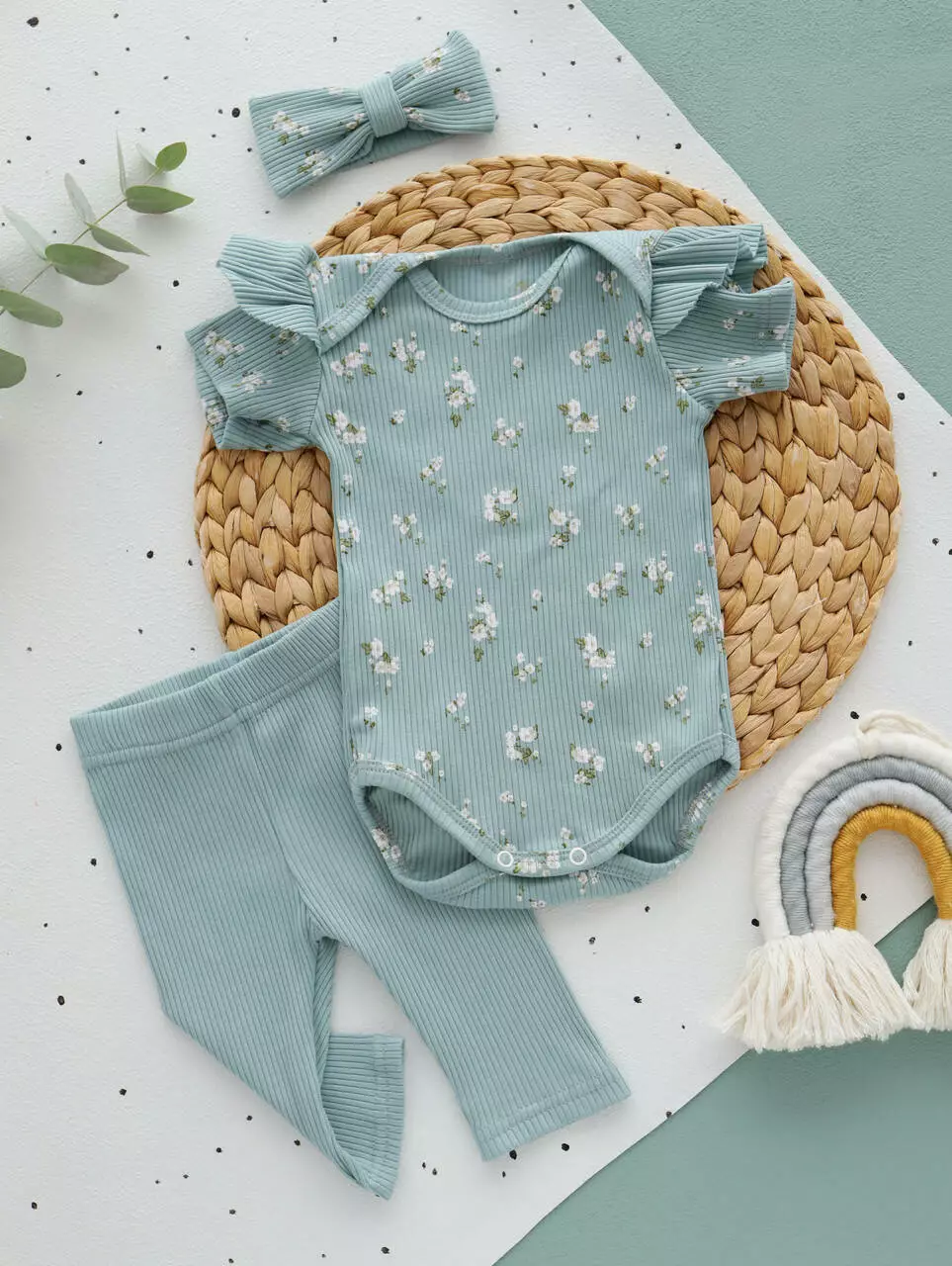 Комплект для девочки ???? боди с рюшами + штанишки + повязка