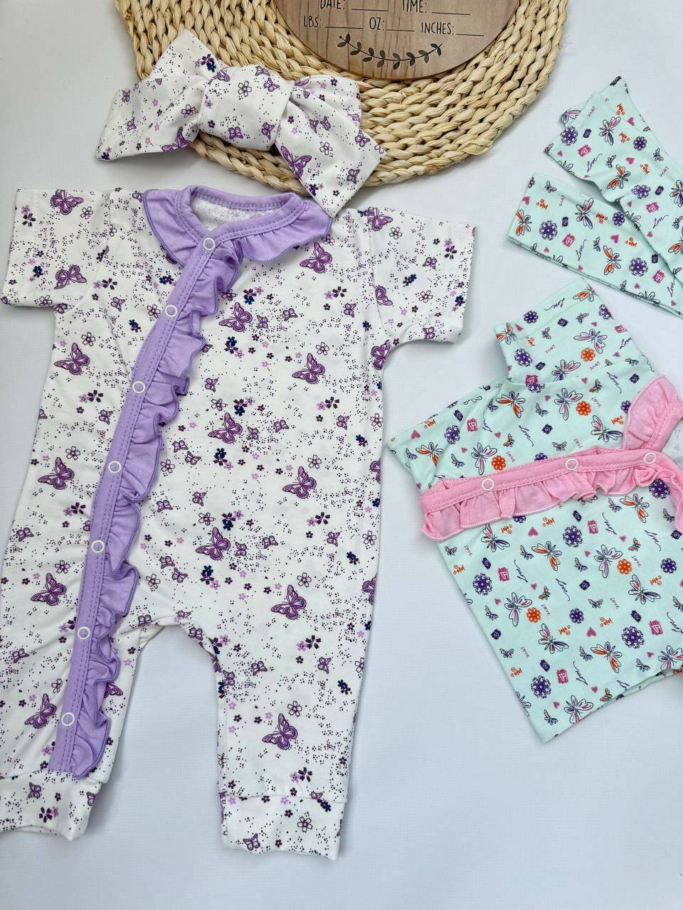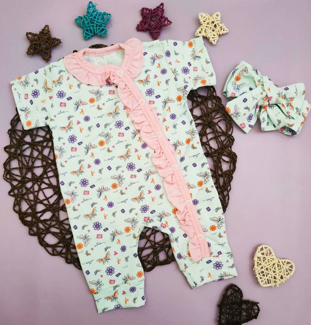 Очаровательный летний комплект для девочки — удобный песочник и милая повязочка на голову из мягкой ткани стрейч кулир ????