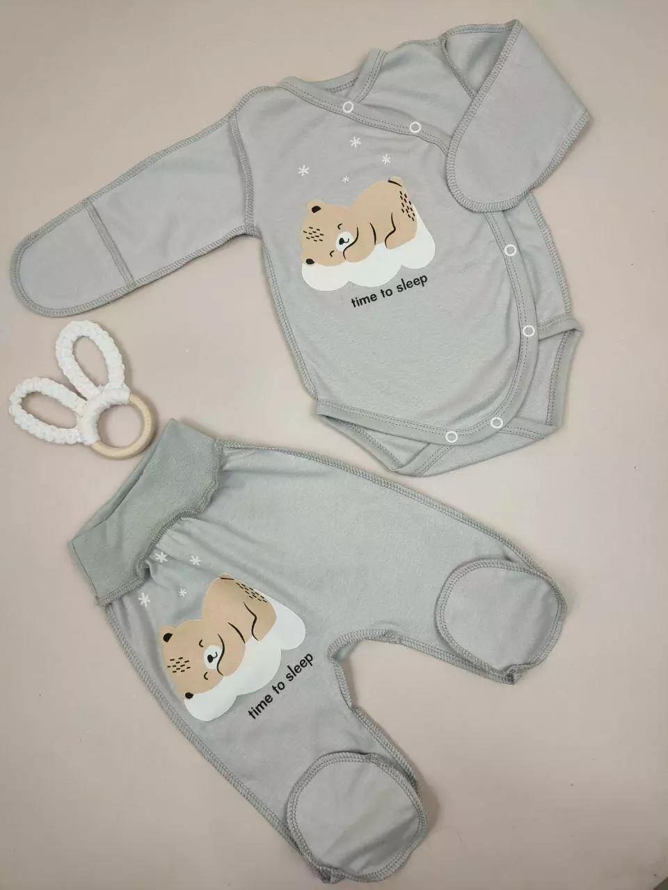 Практичный комплект для малышей, состоящий из удобного боди и мягких ползунков. Отличный выбор для повседневного ношения, сна и прогулок.