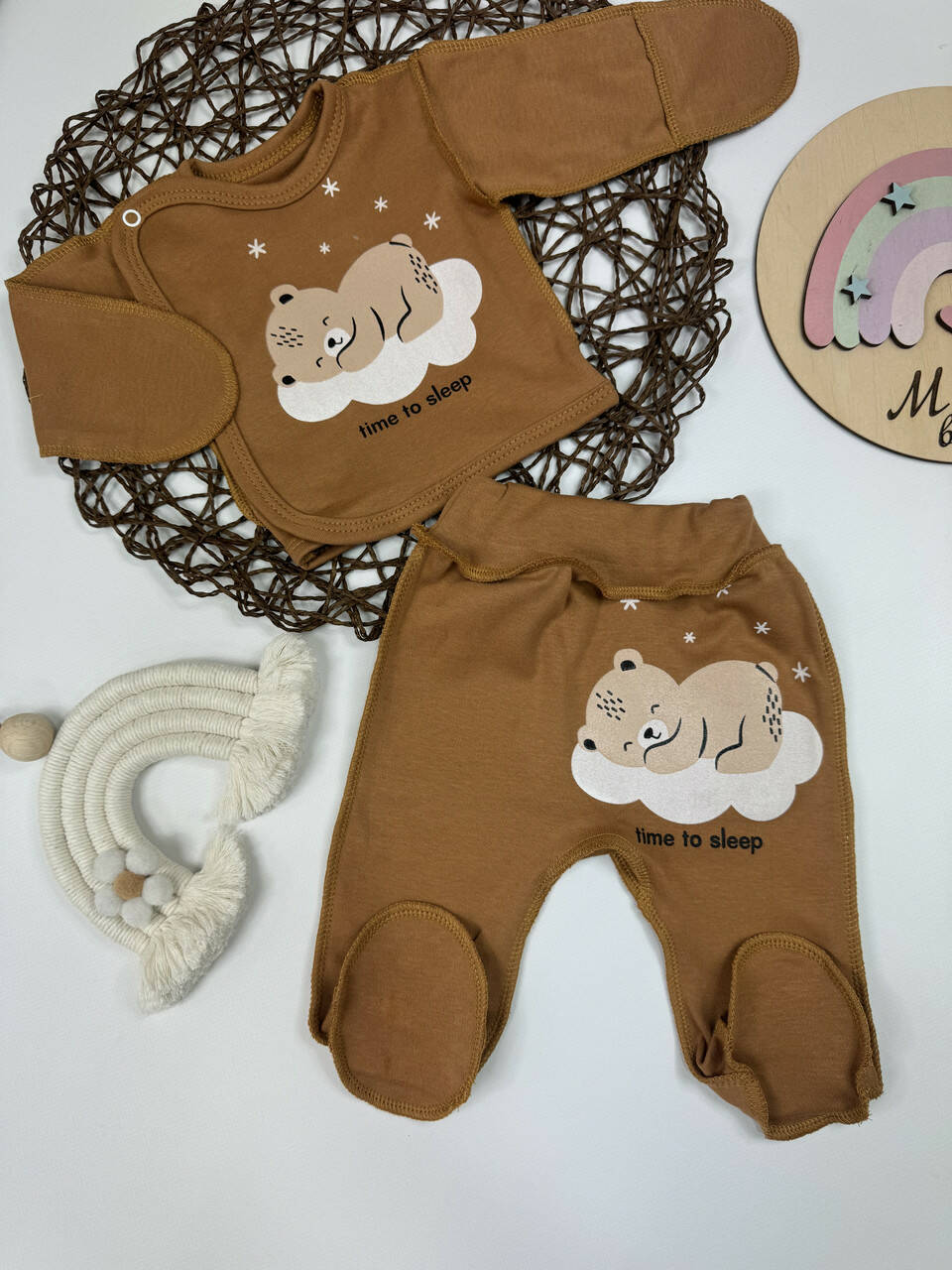 Практичный комплект для малышей, состоящий из удобного боди и мягких ползунков. Отличный выбор для повседневного ношения, сна и прогулок.