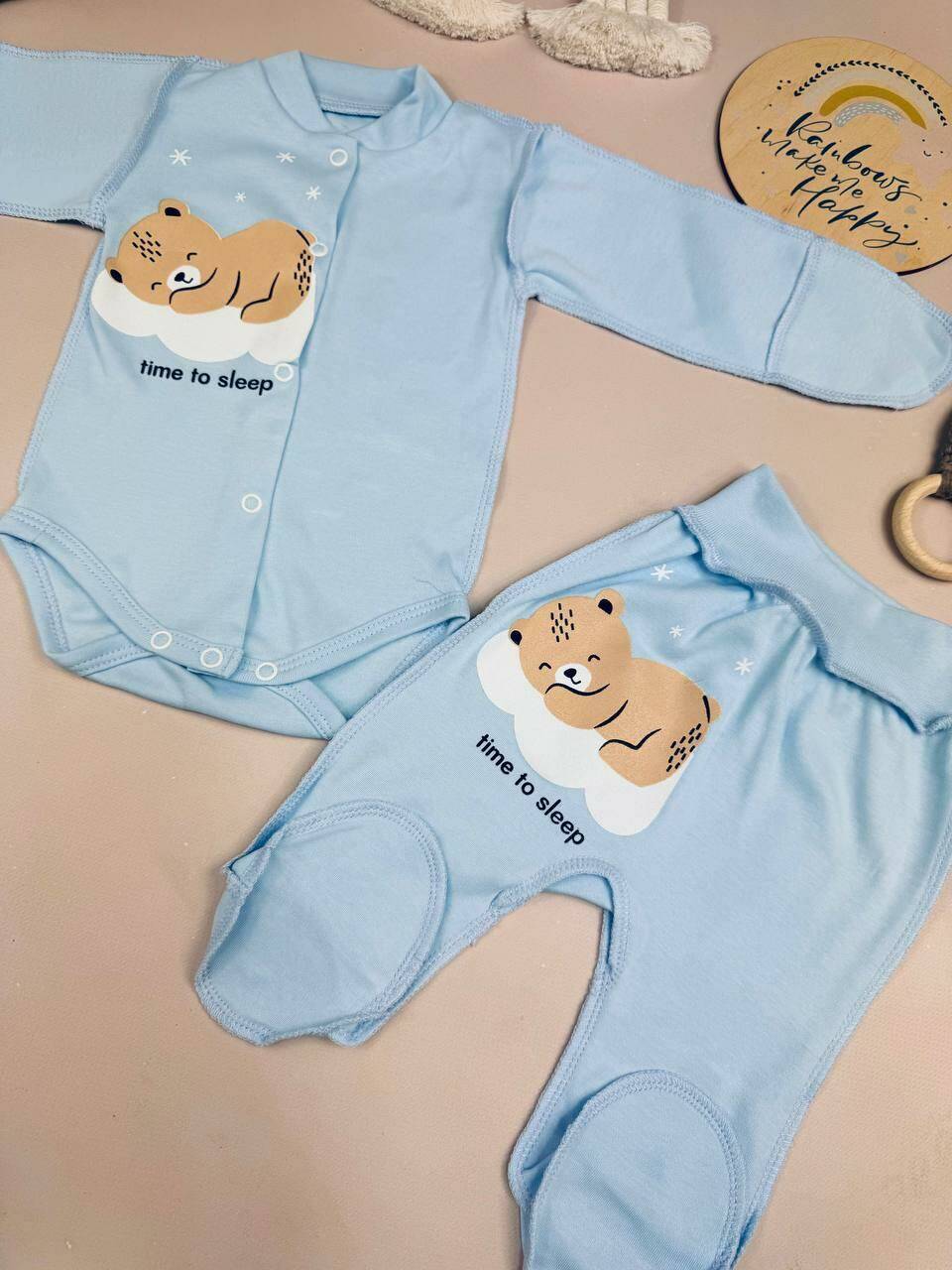 Практичный комплект для малышей, состоящий из удобного боди и мягких ползунков. Отличный выбор для повседневного ношения, сна и прогулок.