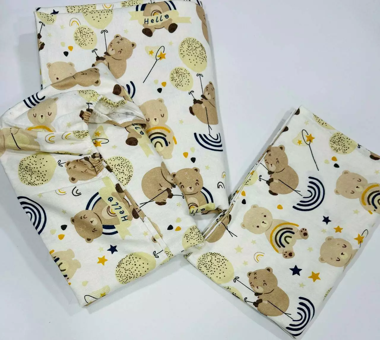 Мягкий комплект постельного белья из байки или фланели — это идеальный выбор для сна новорождённого. Ткань отлично сохраняет тепло, при этом остаётся дышащей и нежной к коже малыша.