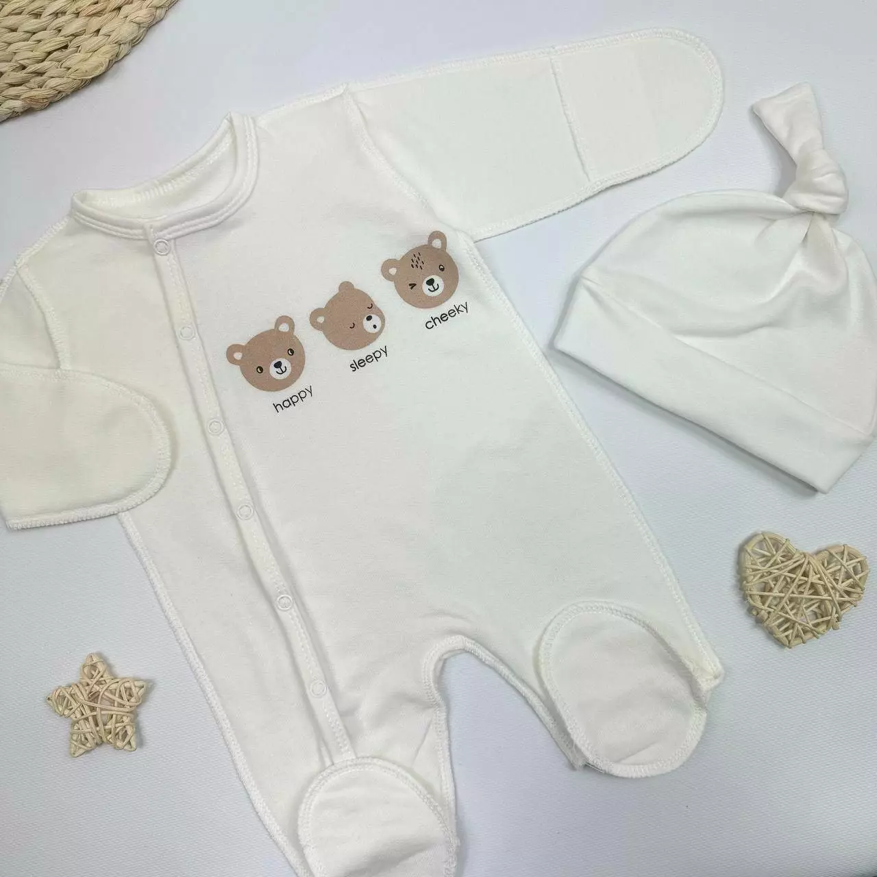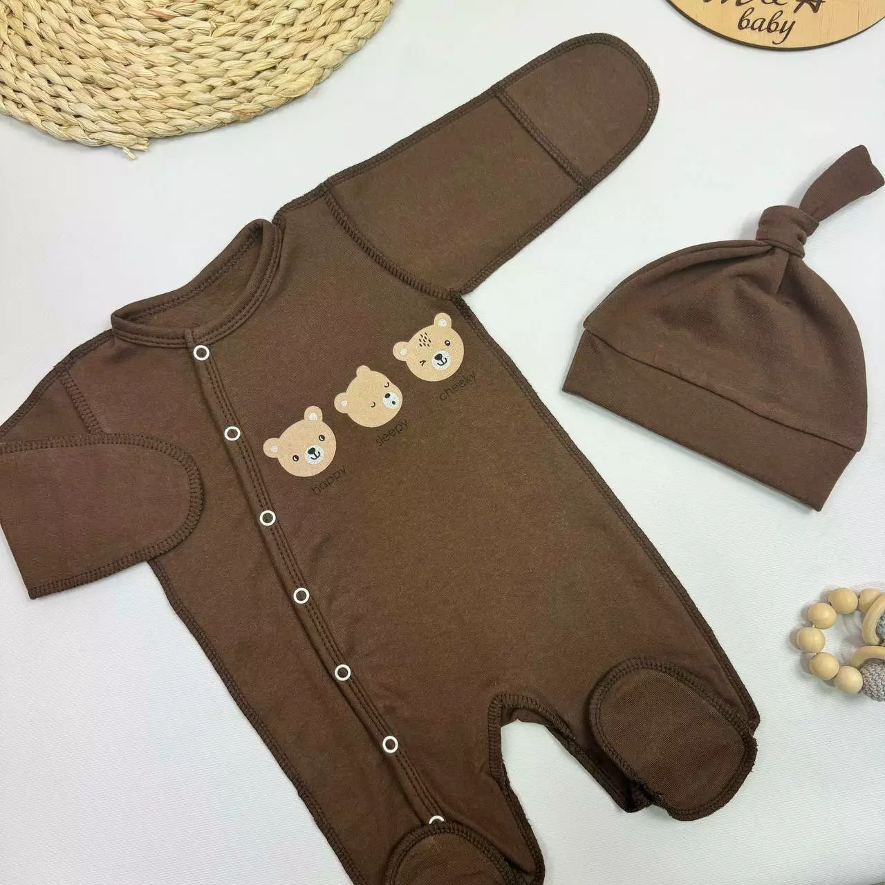 Створіть комфорт та затишок для вашого малюка з цим чудовим комплектом! Чоловічок та шапочка виготовлені з тканини футер начіс, що забезпечує тепло та м'якість навіть в прохолодну погоду. ????????