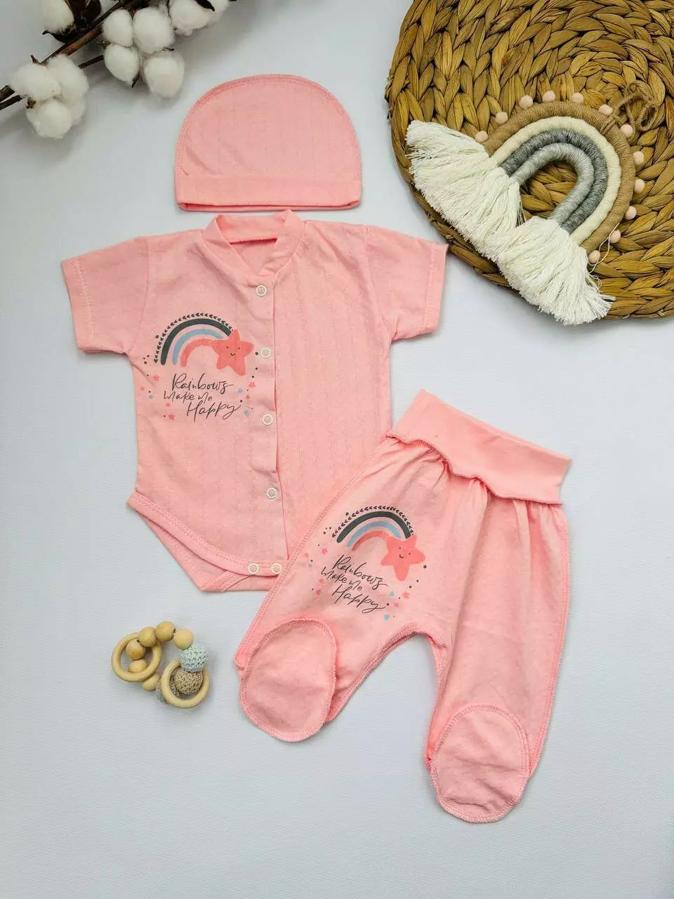 Летний комплект для новорождённого: бодик + ползунки + шапочка из ткани мультирип