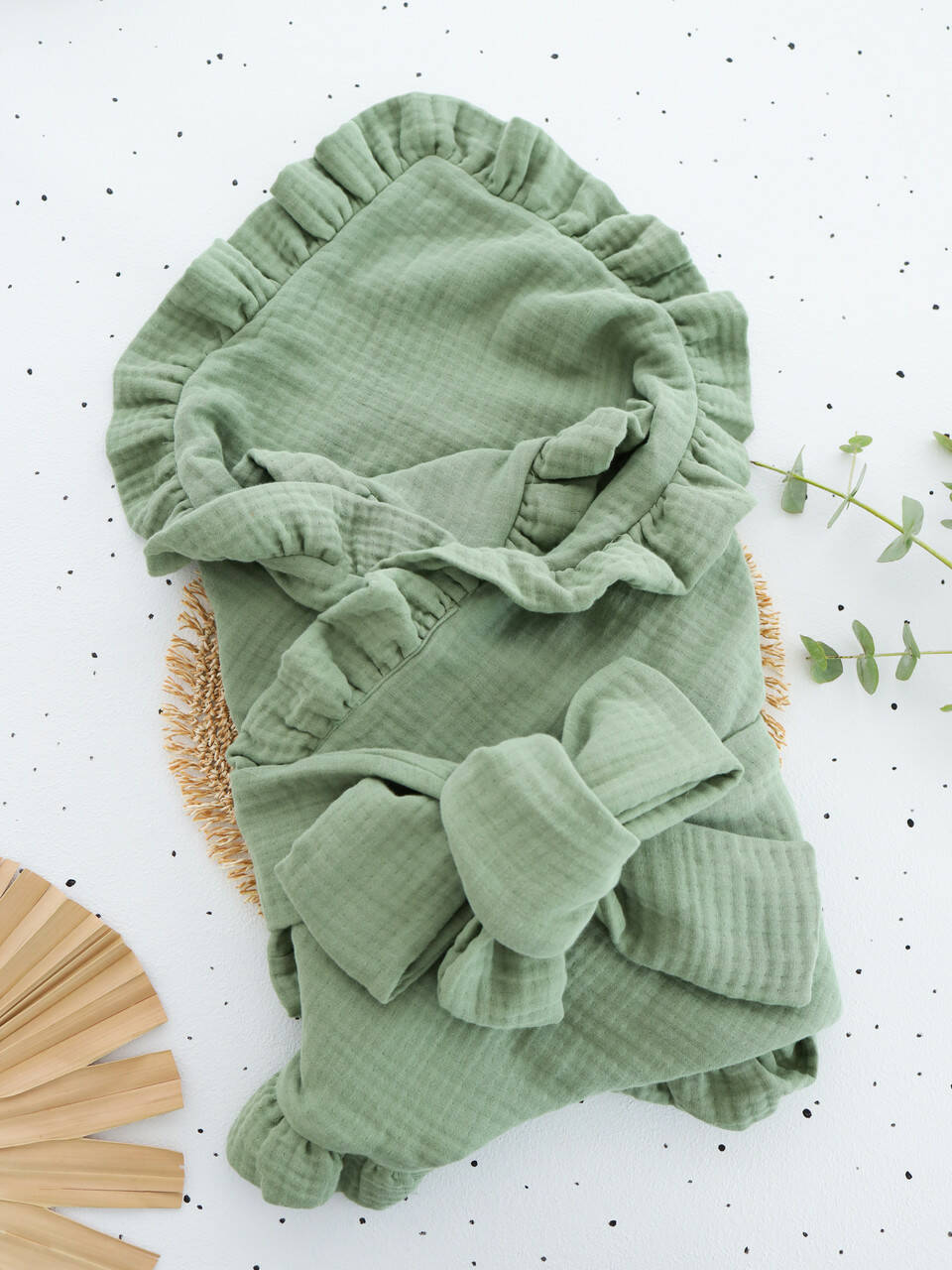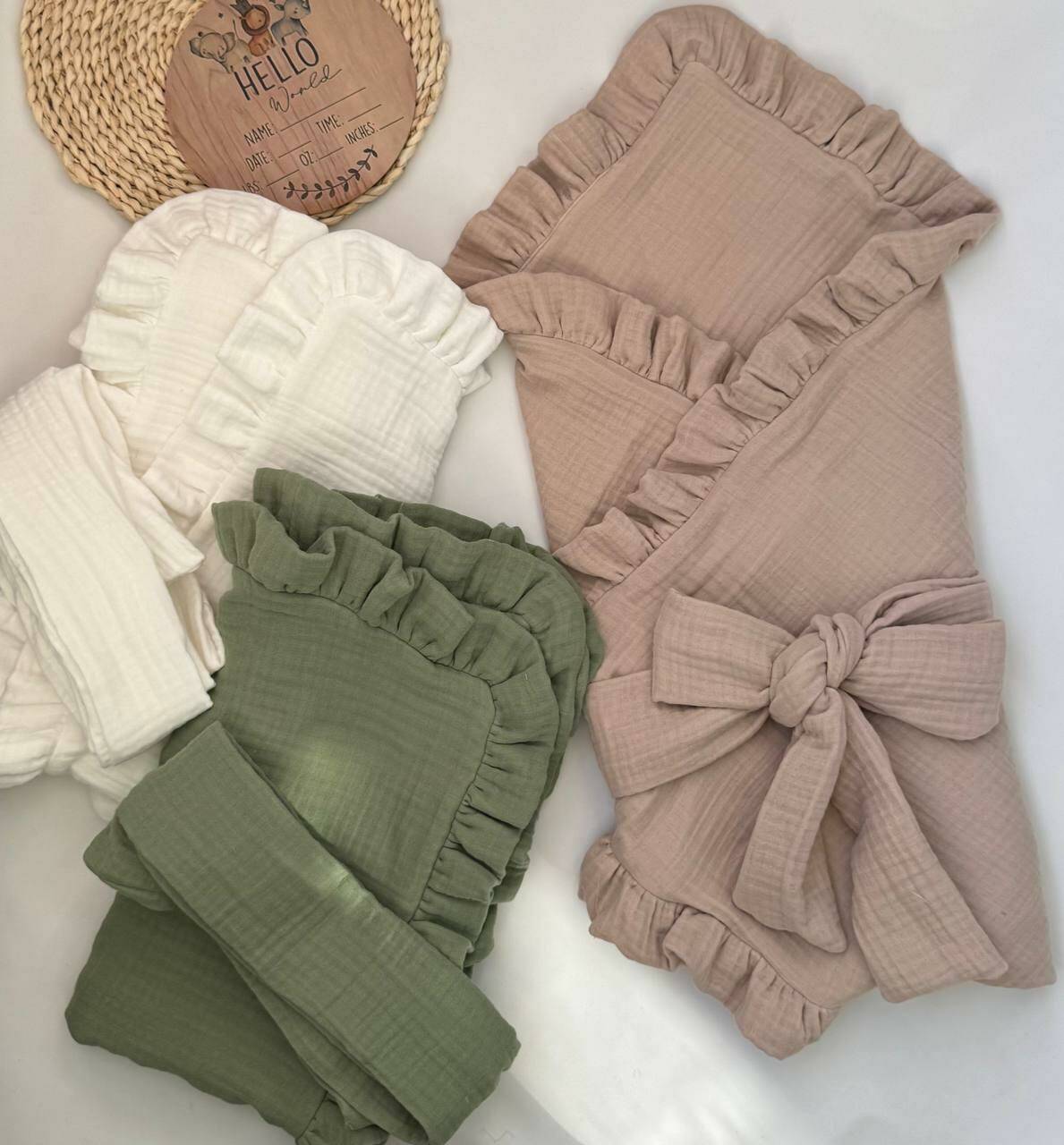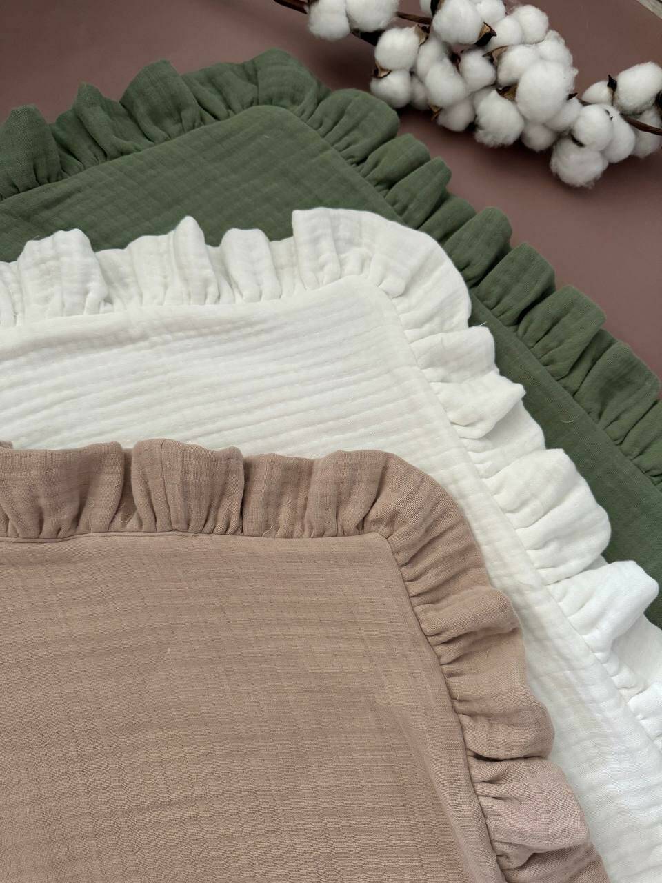 Плед-конверт из муслина с рюшей 80×80 см — нежный, натуральный и