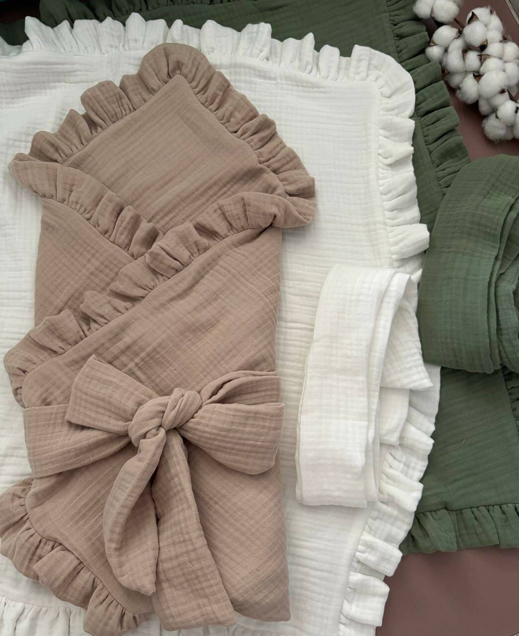 ???? Материал: муслин 100% хлопок (4слойный жатый) — дышащий, мягкий, безопасный