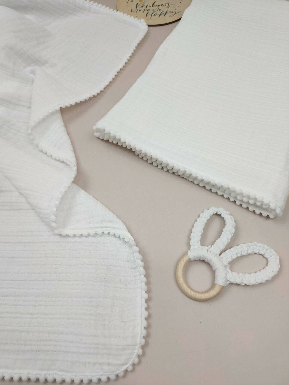 Муслин — один из лучших материалов для младенцев. Он не раздражает кожу, прекрасно «дышит» и остаётся мягким даже после множества стирок.