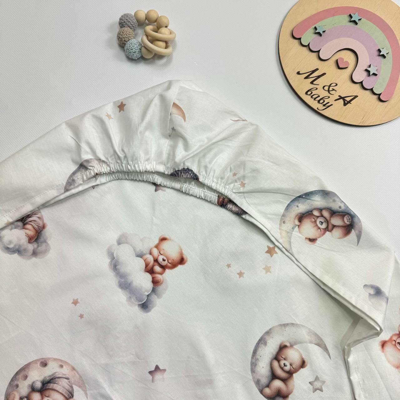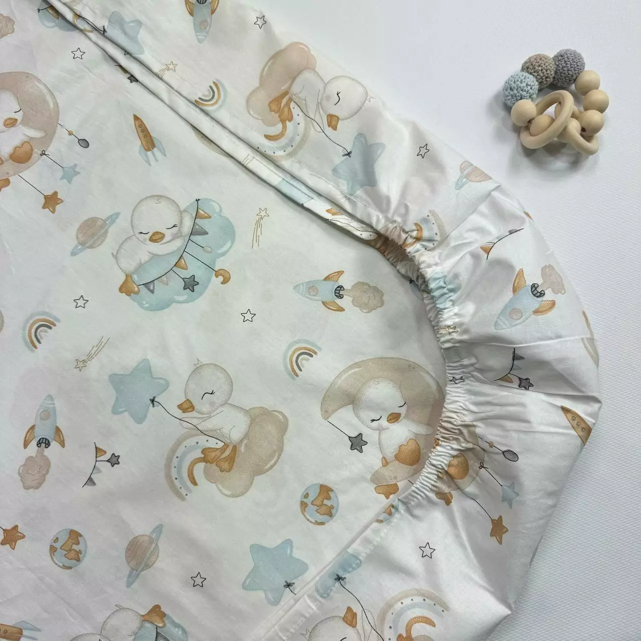 Простыня на резинке из 100% хлопка — идеальное решение для кроватки новорождённого. Мягкая, дышащая ткань бережно огортает малюка, а резинка по краю позволяет легко зафиксировать простыню на матрасе, не допустив сползания.