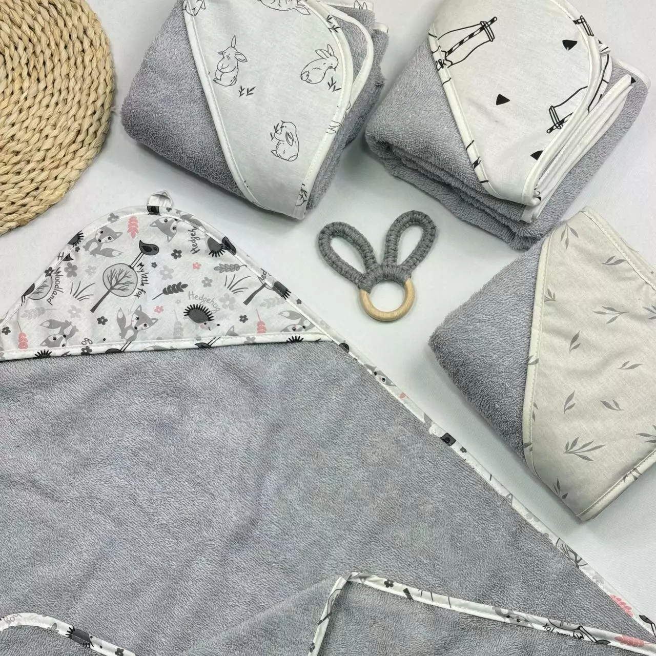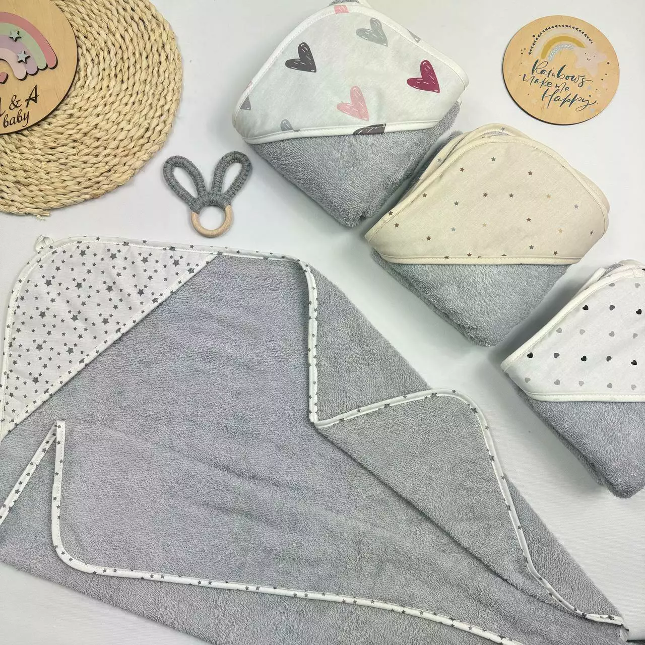 Опис: М'який і зручний кутик з комбінації бавовни та махри, ідеальний для ніжної шкіри вашого малюка. Ця тканина забезпечує відмінну теплоізоляцію і м'якість, що робить кутик ідеальним для обгортання малюка після купання або на прогулянках.