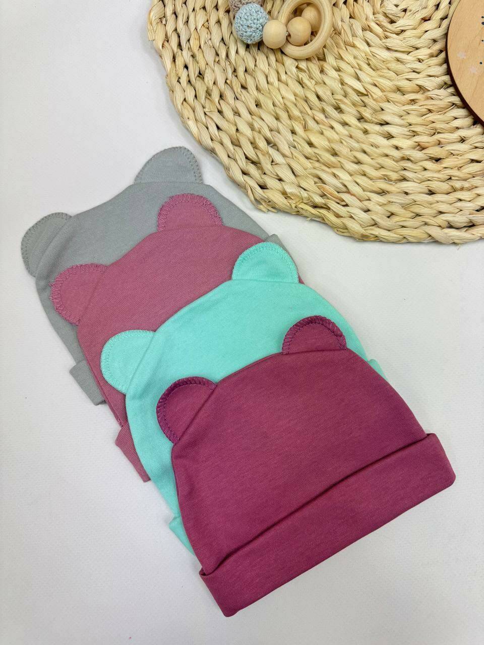 ???? Детская шапочка с ушками из интерлока — размеры 56, 62, 68