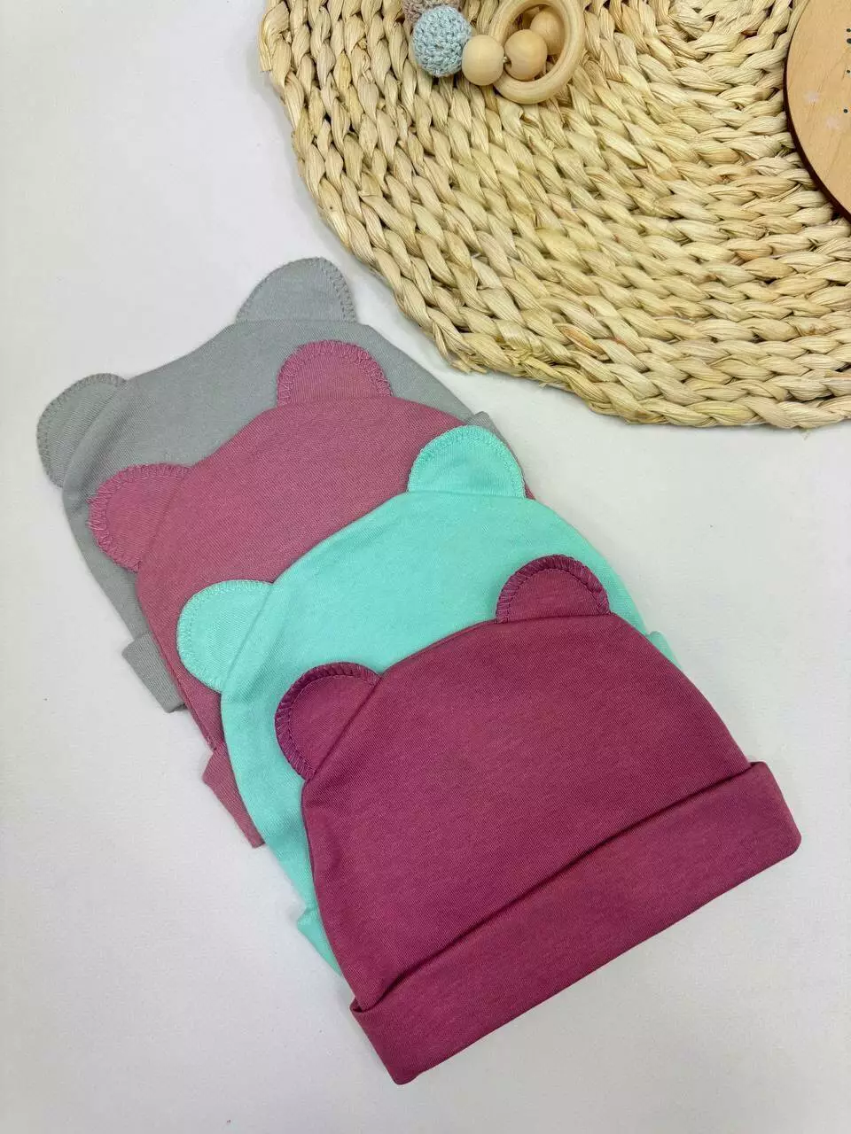 Очаровательная шапочка с ушками для новорождённых выполнена из нежного хлопкового интерлока — безопасного и мягкого материала, который не раздражает кожу и идеально подходит для малышей. Благодаря удобной форме и милому дизайну с ушками, она отлично сидит на голове и придаёт образу малыша ещё больше уюта и нежности.