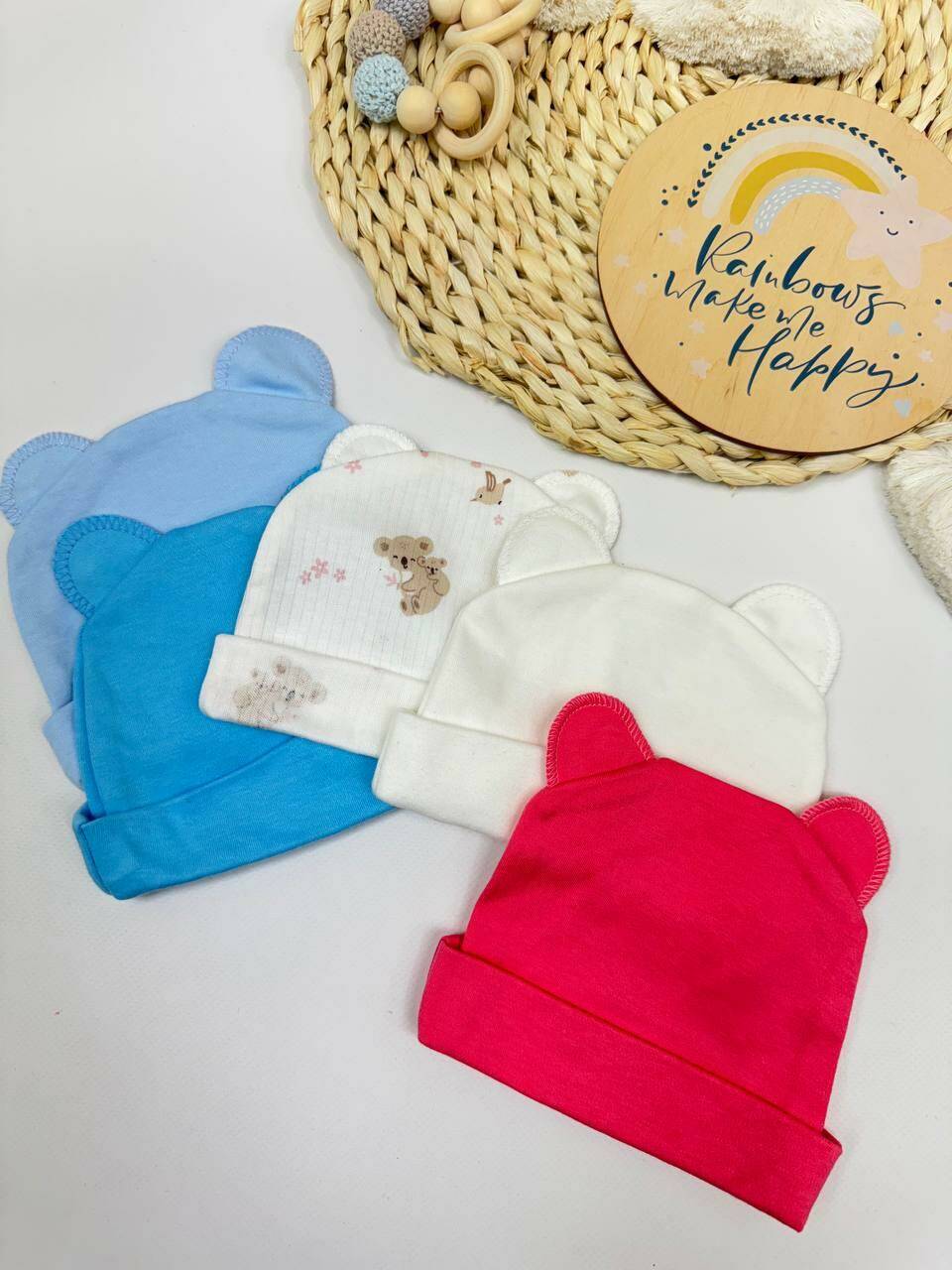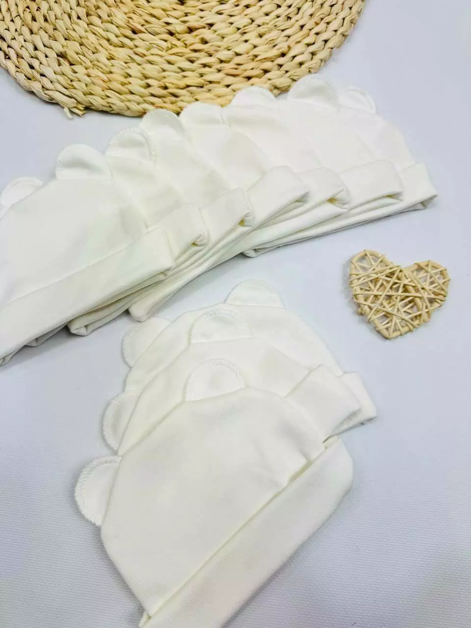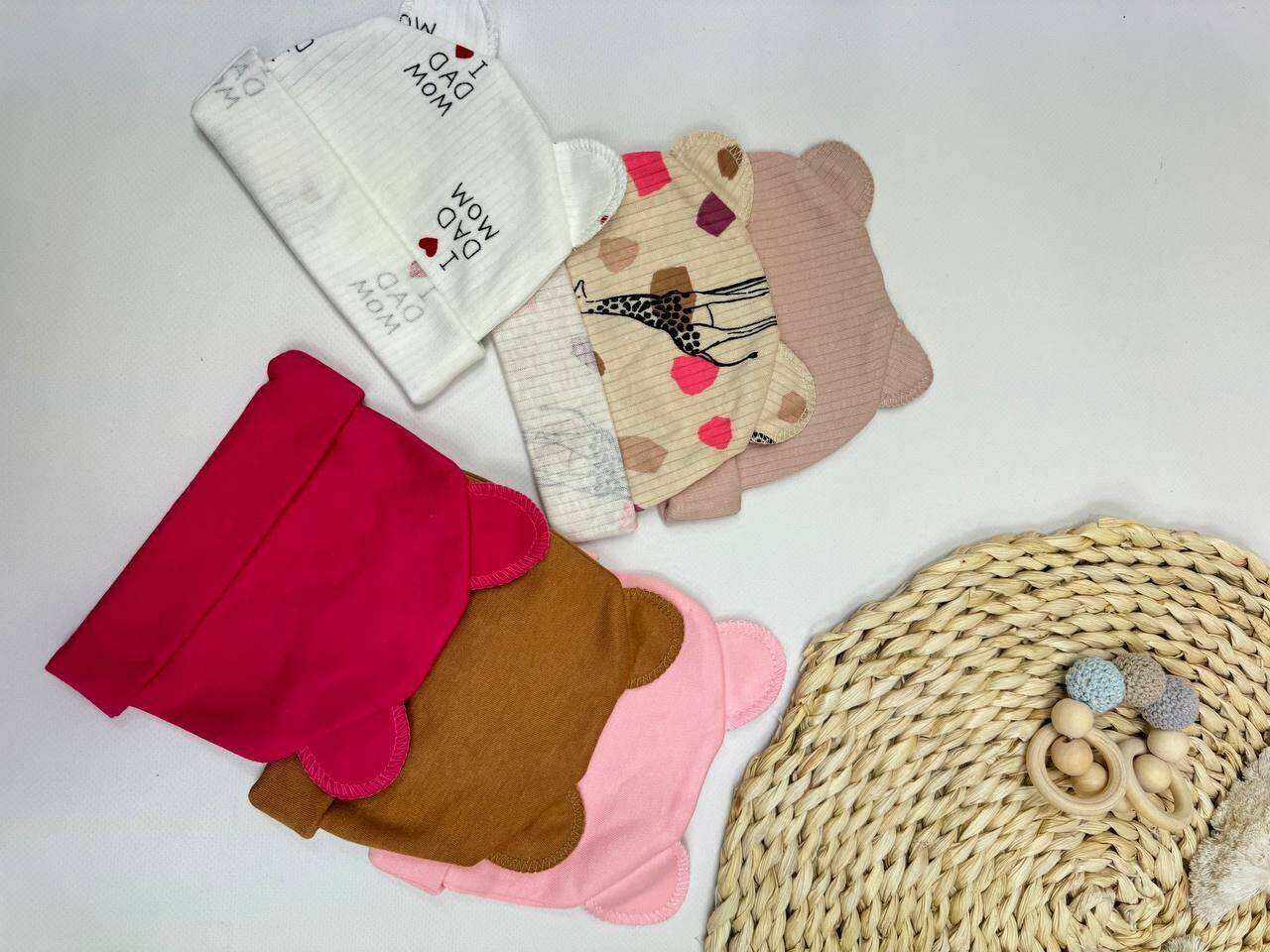 Очаровательная шапочка с ушками для новорождённых выполнена из нежного хлопкового интерлока — безопасного и мягкого материала, который не раздражает кожу и идеально подходит для малышей. Благодаря удобной форме и милому дизайну с ушками, она отлично сидит на голове и придаёт образу малыша ещё больше уюта и нежности.