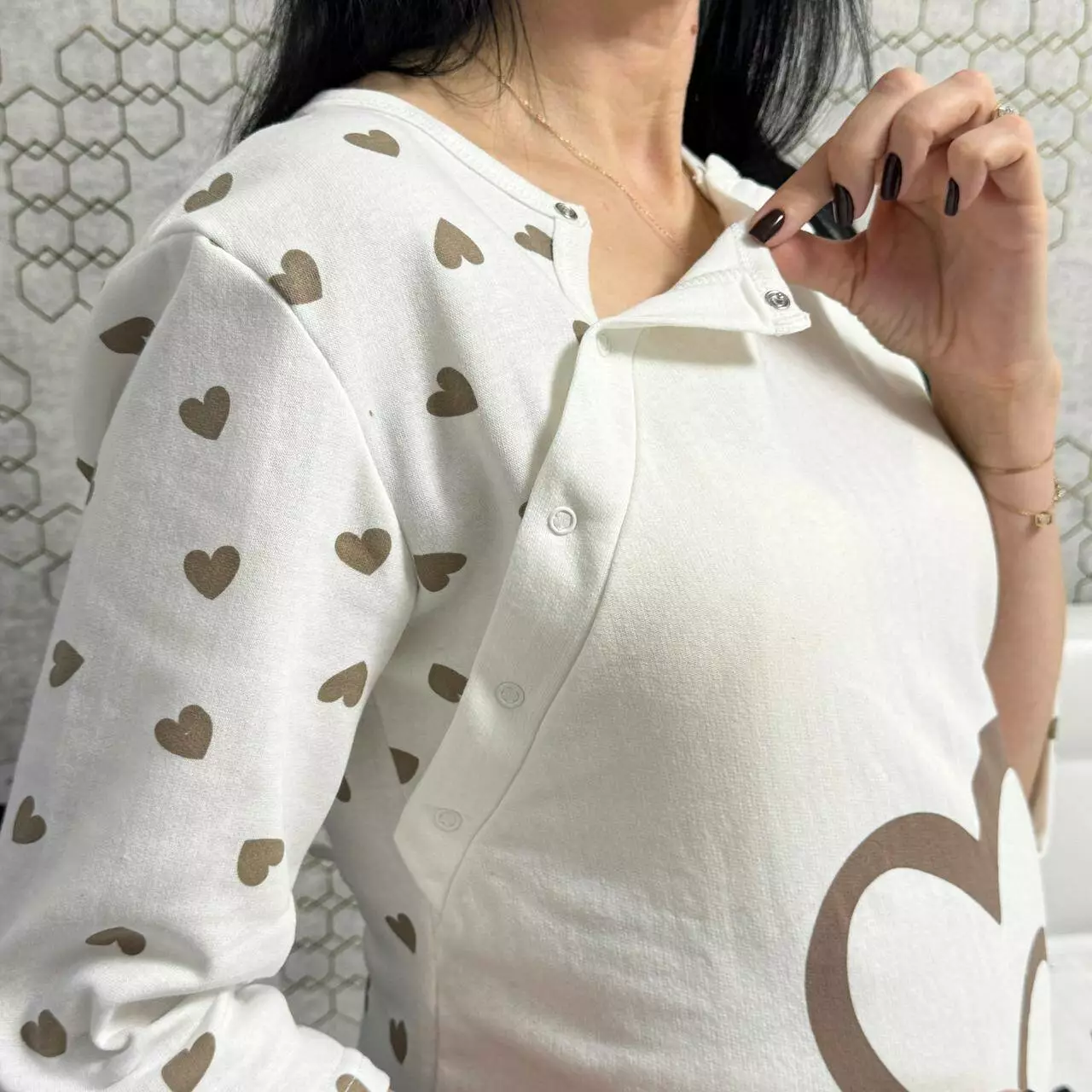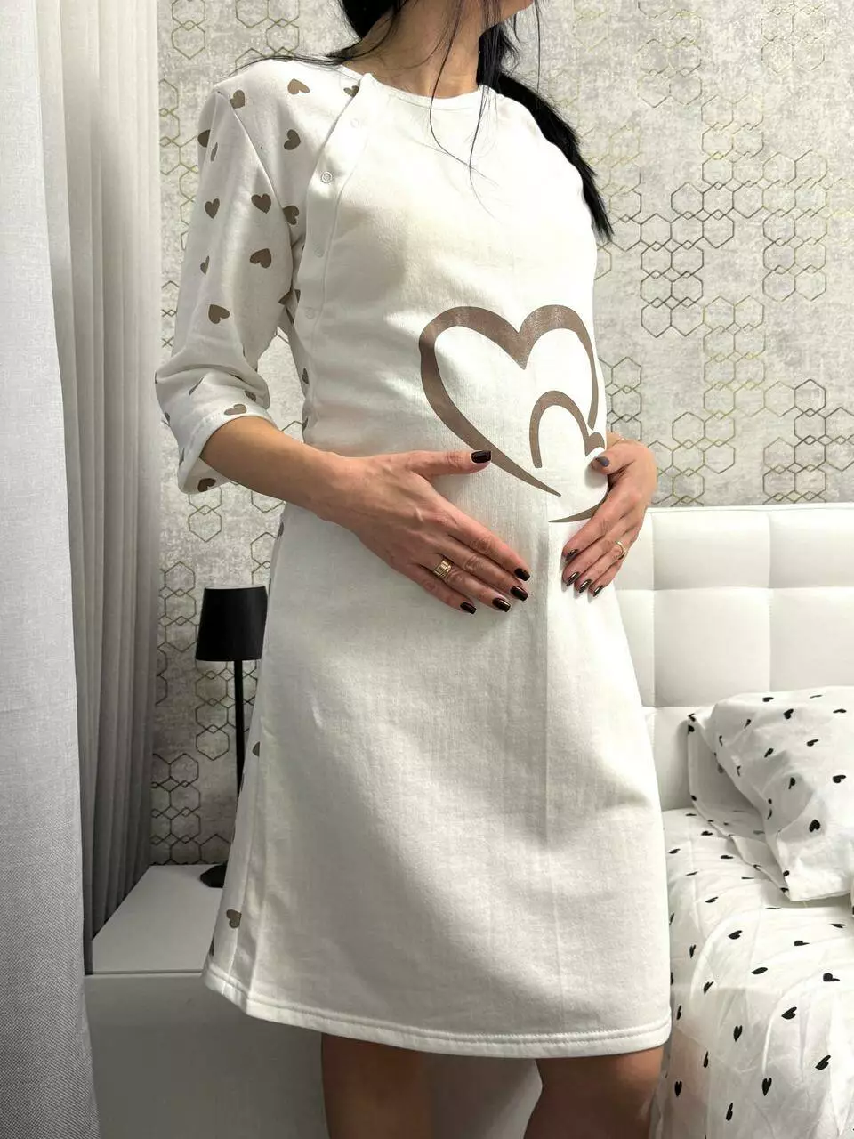 Мягкая и тёплая ночная сорочка из футера станет незаменимой частью гардероба будущей мамы ????. Благодаря удобной застёжке на кнопке в зоне груди кормление малыша ночью станет быстрым и простым ????????.
