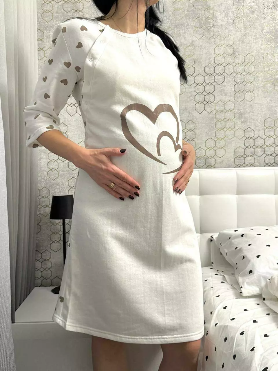 Тёплая ночная рубашка для беременных и кормящих мам с кнопкой