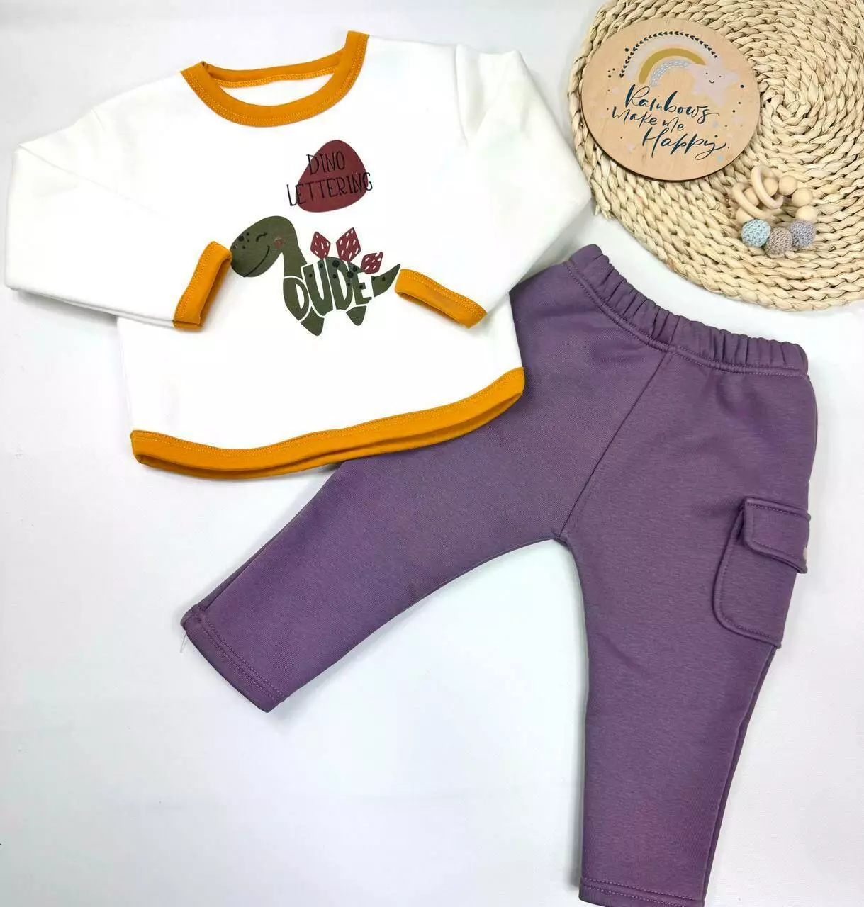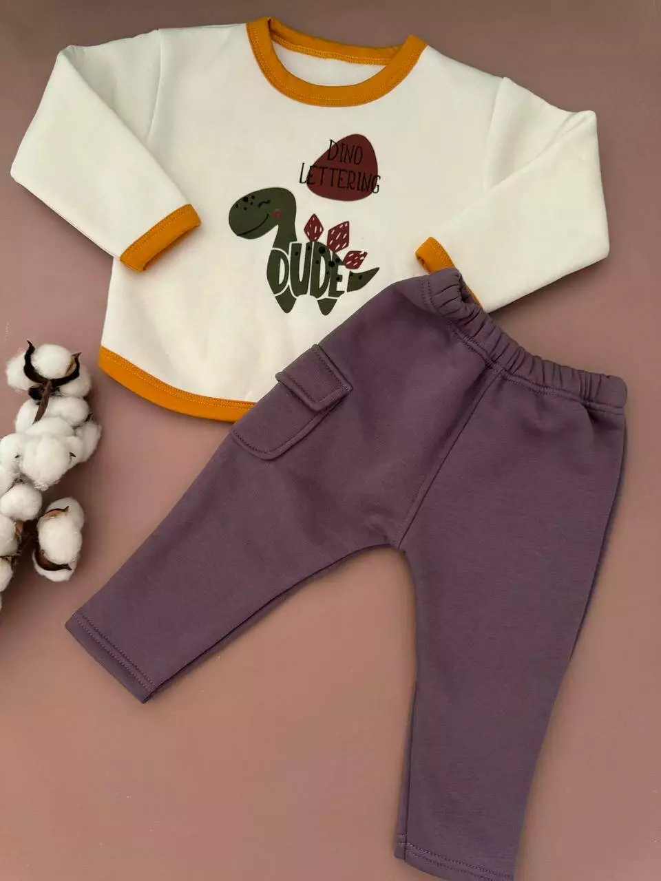 Идеальное решение для прохладного времени года — это удобный и практичный детский комплект из трёхнитки с начёсом, в который входят кофточка и штанишки. Он подойдёт для повседневной носки дома, в детский сад или на прогулку.